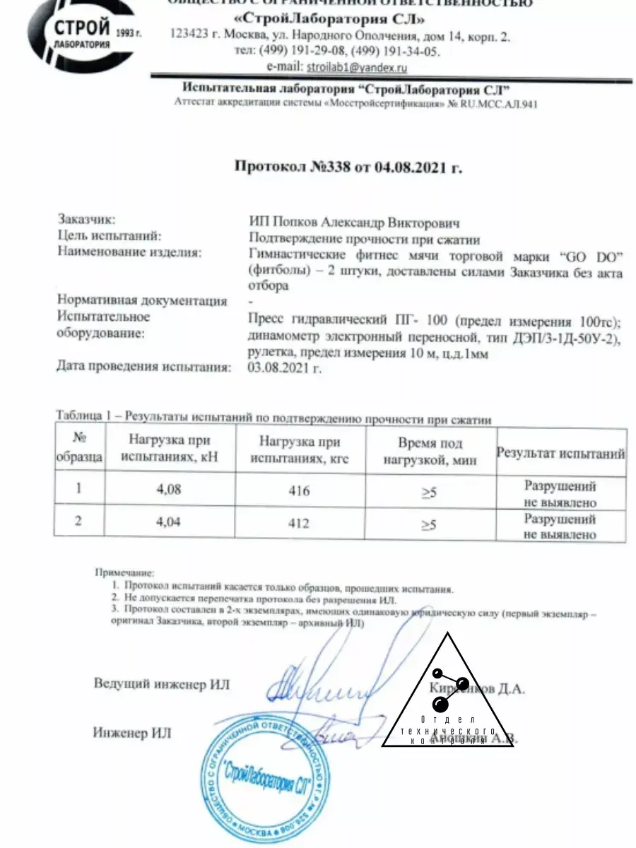 *Мы провели независимые лабораторные испытания на определение нагрузки в кг при сжатии. Эти параметры являются очень важными для безопасности пользователя.