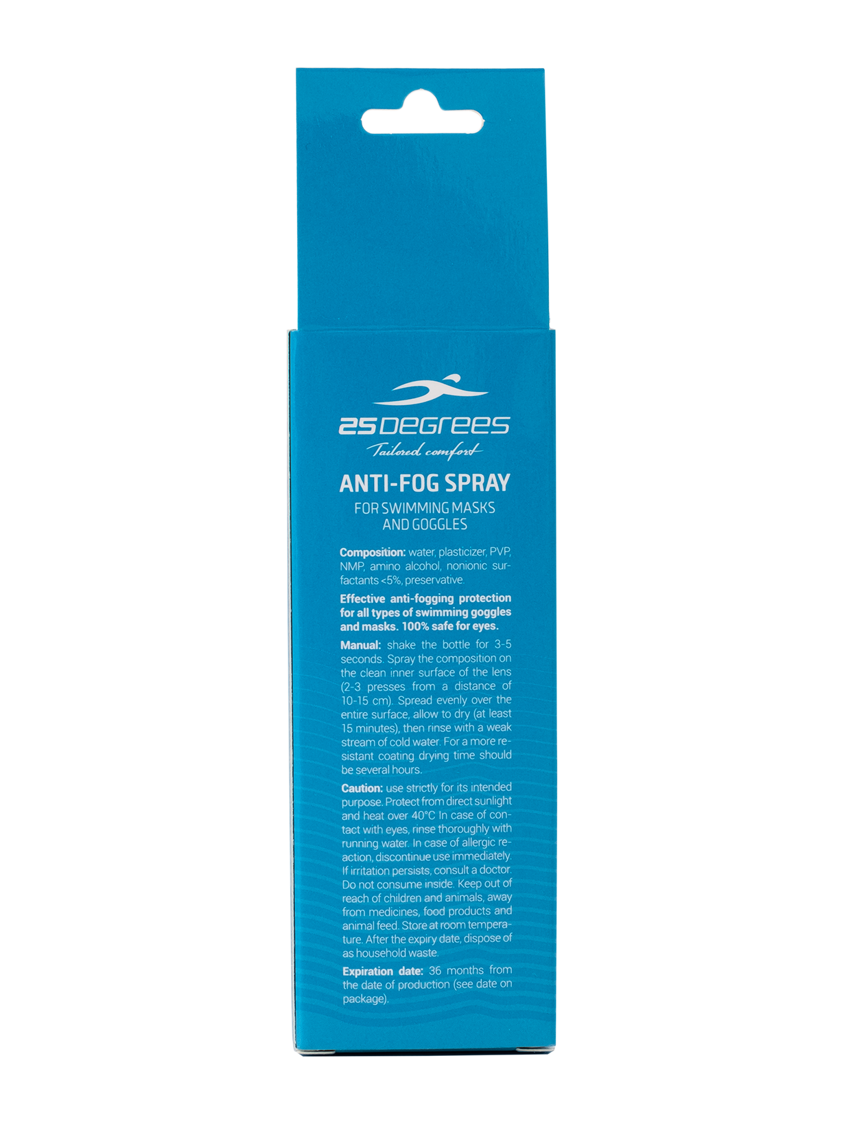 Антифог Nofog от бренда 25DEGREES предназначен для эффективного предотвращения запотевания линз всех типов плавательных очков и масок. Спрей-антизапотеватель обеспечивает длительную защиту стекол от запотевания во время плавания. Использование антифога для масок позволяет в полной мере насладиться тренировкой. Компактный флакон с удобным дозатором можно носить с собой. Средство от запотевания очков безопасно для глаз, его также можно использовать для очков для коррекции зрения.