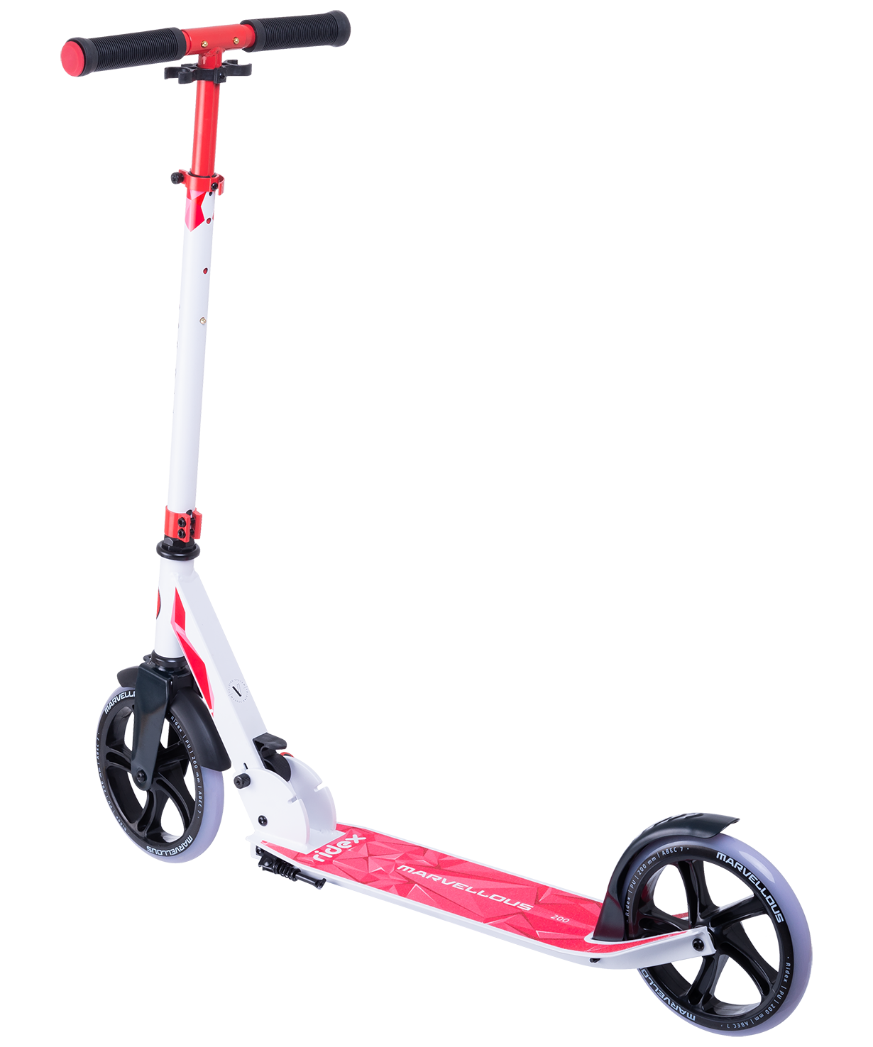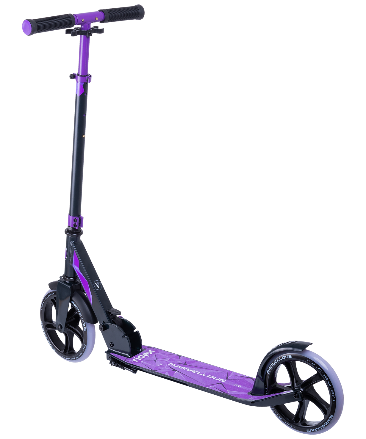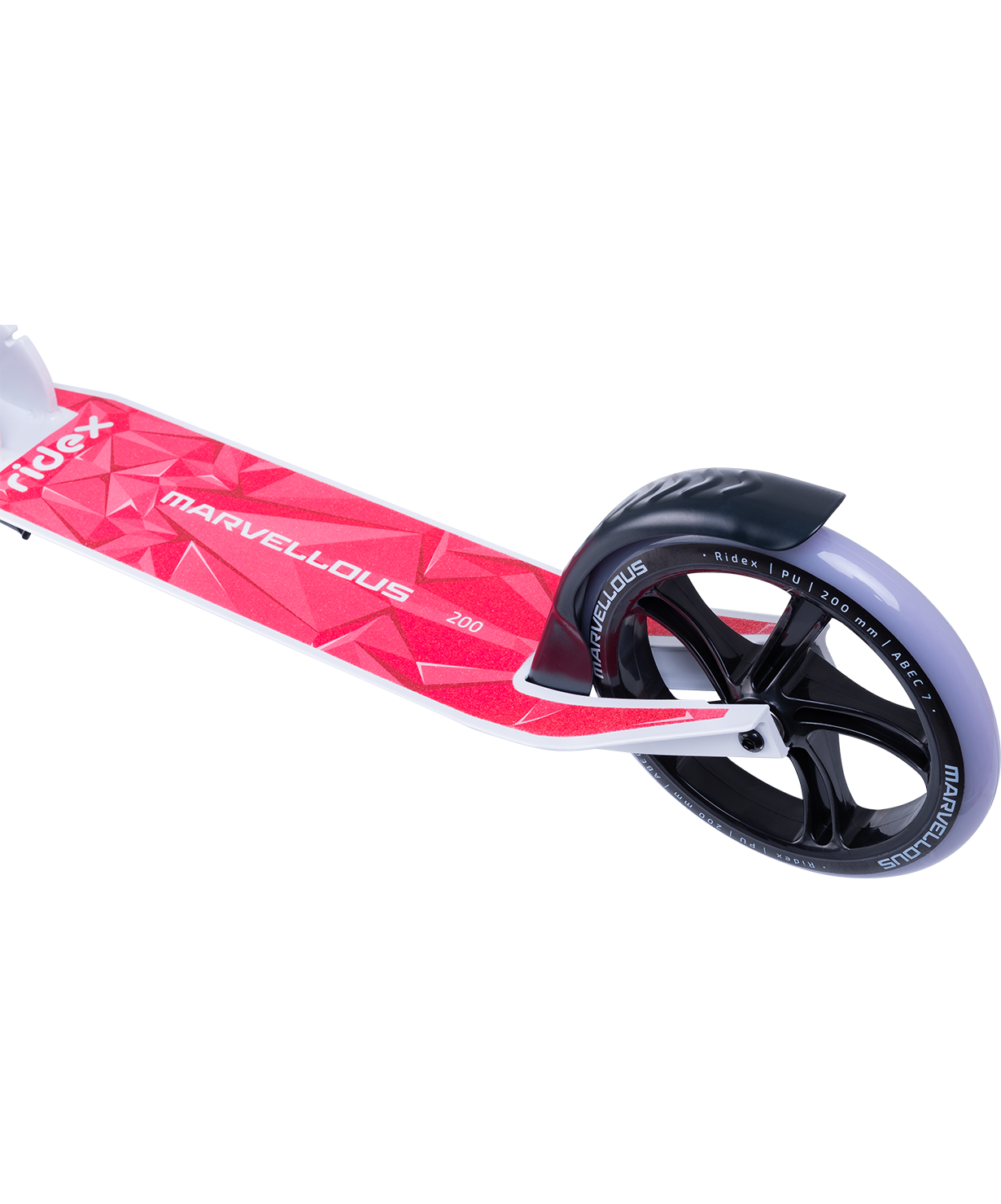 Удивительная модель в линейке RIDEX! Этот двухколесный самокат сделан из легкого и высокопрочного алюминиевого сплава, поэтому поездки на нем просты и безопасны. Помогает в этом и заниженная дека, которая позволяет передвигаться по городу в расслабленном режиме, отталкиваясь лишь носком. Складной механизм удобно расположен между декой и рулём, а фирменный ремень в комплекте повышает уровень комфортного перемещения складного двухколесного самоката в сложенном виде. Полиуретановые колеса диаметром 200 мм быстро домчат вас из одной точки в другую, а шустрые подшипники ABEC-7 обеспечат отличный накат. Marvellous – это комфортный и практичный самокат на двух колесах для городского пространства. Приятным бонусом для вас станет яркая палитра моделей из семи цветовых решений, среди которых вы найдёте ту единственную, подходящую именно вам.