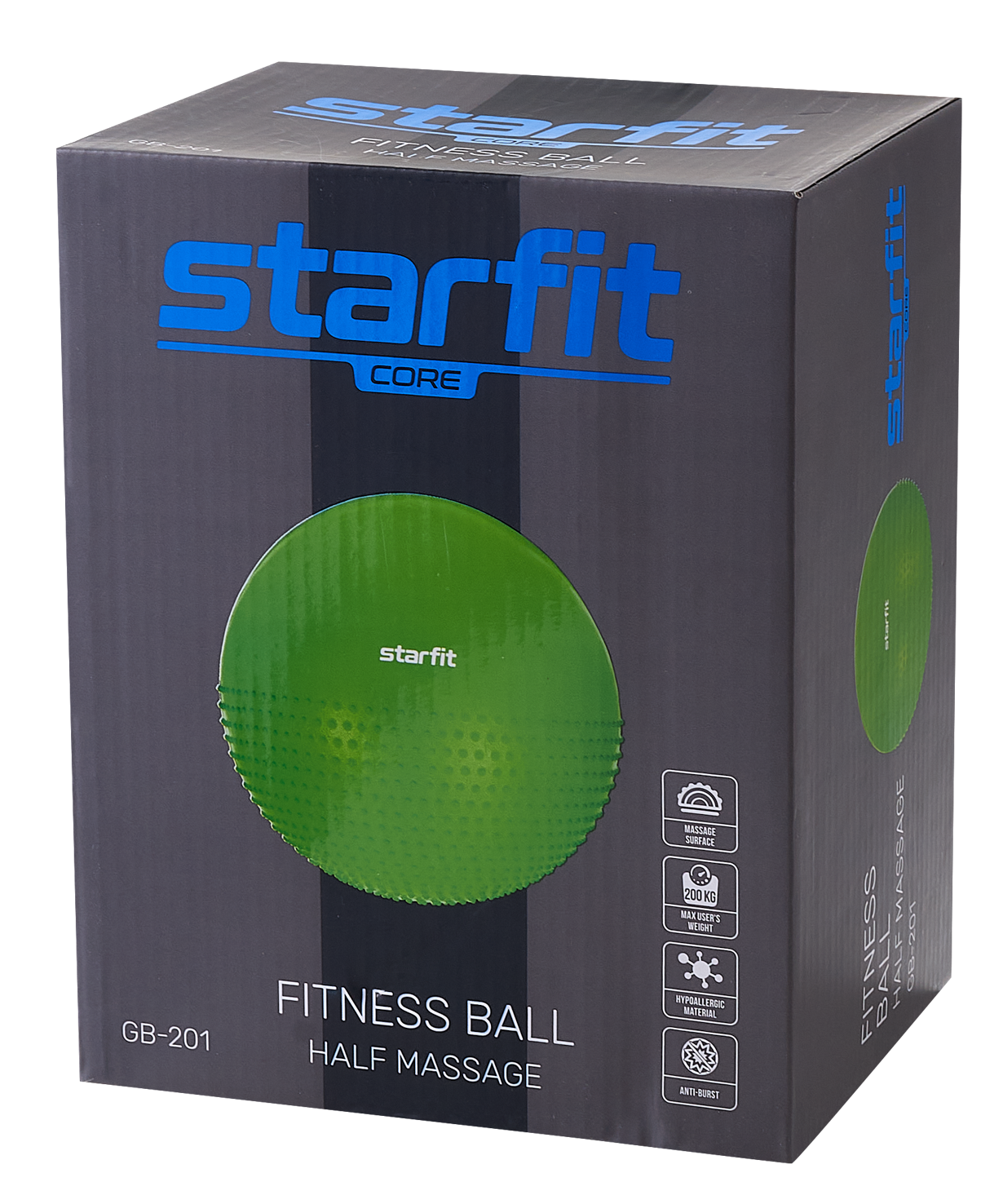 Фитбол полумассажный STARFIT GB-201 – универсальный снаряд, на котором всегда можно поменять сторону использования с простой гимнастической на массажную и обратно. С помощью мяча можно тренировать все мышцы тела, правильно выстроив тренировочный процесс и используя его как основной или второстепенный снаряд для тренировки, создавая за счет него лишь синергизм действия, а не основу упражнения. Такой гимнастический мяч удобно использовать для массажа мышц с повышенным тонусом. Дополнительную безопасность тренировкам придает система «Антивзрыв» - при случайном проколе снаряд сдуется, а не лопнет.