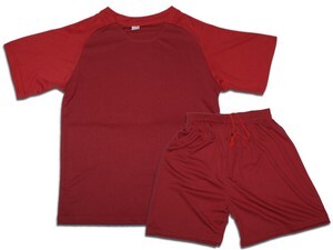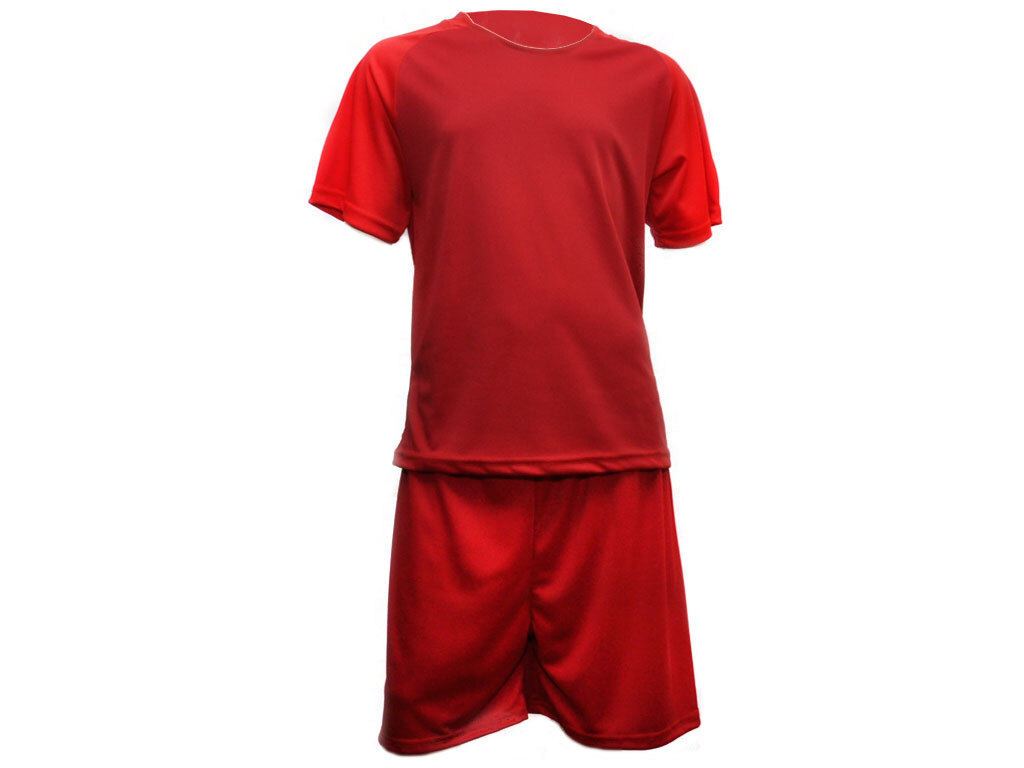 Футбольная форма состоит из классического комплекта, который включает в себя игровую футболку и шорты. Используется как форма для полевых игроков команды. Футболка с коротким рукавом пошита из красного полиэстера с круглым вырезом горловины. Шорты пошиты из полиэстера тёмно-красного цвета. Благодаря свойствам ткани форма не парит кожу, быстро отводит влагу и прекрасно вентилирует. Быстро высыхает, не требует дополнительной глажки.
