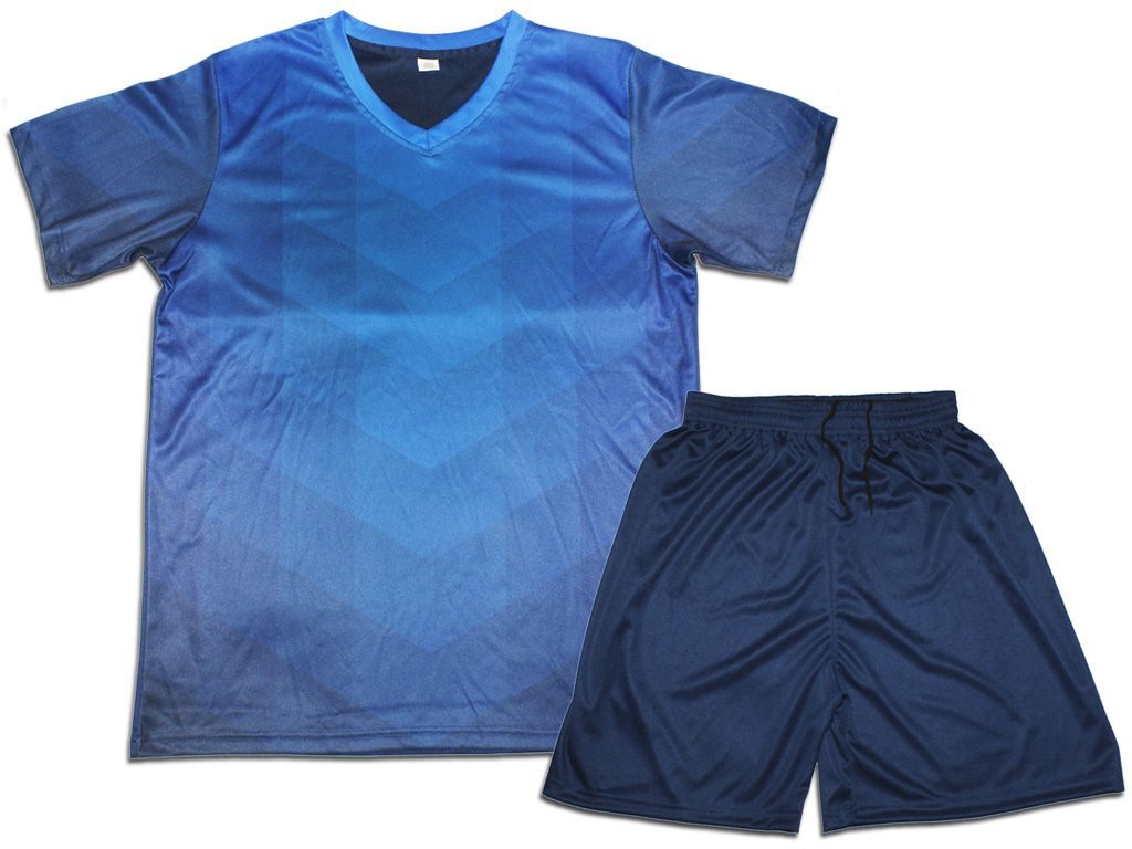 Футбольная форма состоит из классического комплекта, который включает в себя игровую футболку и шорты. Используется как форма для полевых игроков команды. Футболка с коротким рукавом пошита из синего полиэстера с V-образным вырезом горловины. Шорты пошиты из полиэстера тёмно-синего цвета. Благодаря свойствам ткани форма не парит кожу, быстро отводит влагу и прекрасно вентилирует. Быстро высыхает, не требует дополнительной глажки.