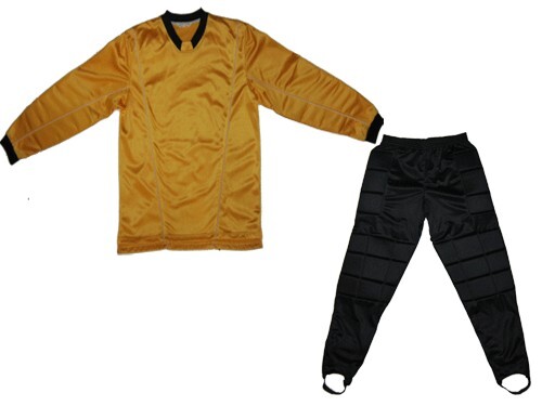 Форма вратарская «ЗЕТА». Вратарская форма состоит из классического комплекта, который включает в себя игровую футболку с длинным рукавом и брюки. Используется как форма для вратаря игровой команды. Футболка с длинным рукавом пошита из полиэфира c полукруглым классическим вырезом горловины, на локтях вшиты мягкие вставки, защищающие вовремя игры. Брюки пошиты из такого же материала и фиксируются на стопе с помощью резинки, по бокам на бедрах и на коленках так же вшиты мягкие вставки для защиты. Благодаря свойствам ткани форма не парит кожу, быстро отводит влагу и прекрасно вентилирует. Быстро высыхает, не требует дополнительной глажки.