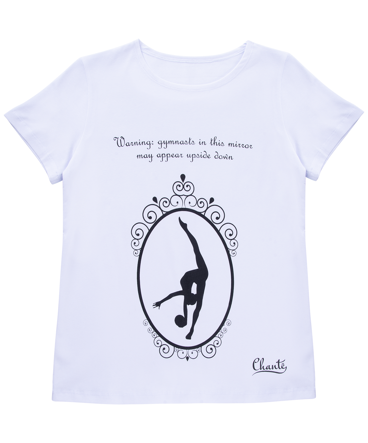 Футболка с принтом гимнастки перед зеркалом, выполнена из хлопка премиум качества.
