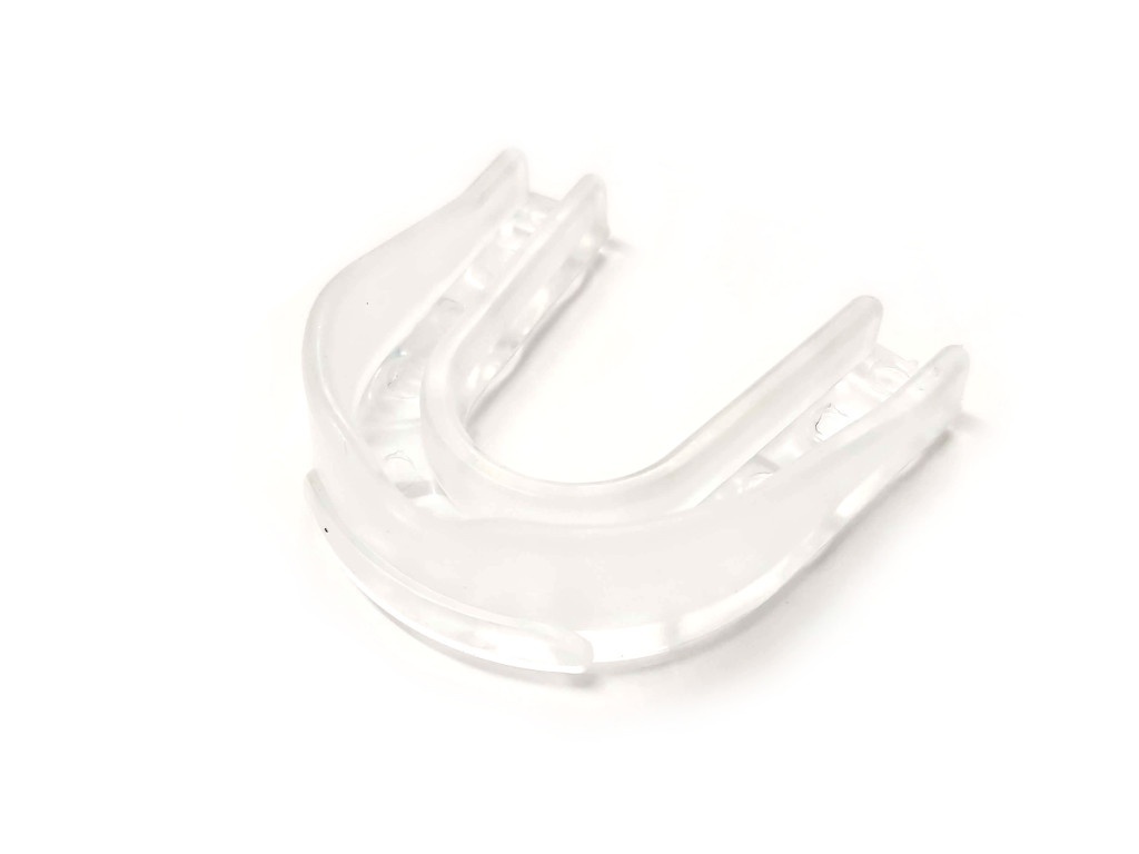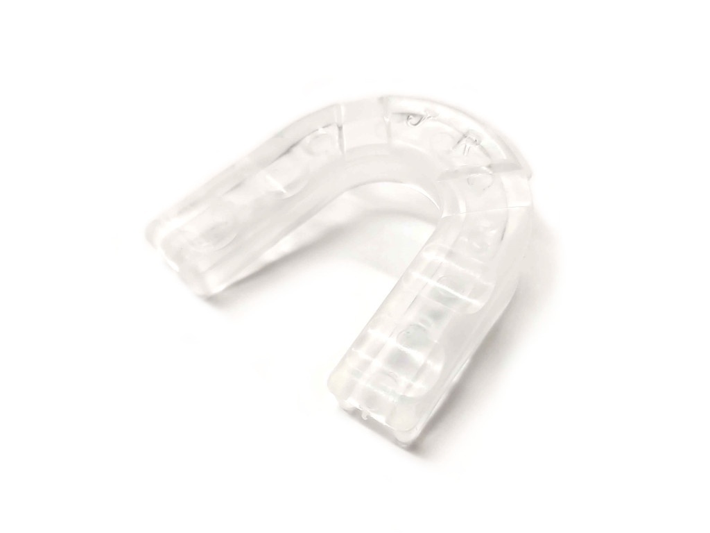- Потом возьмите капу и закусите ее стиснув зубы. Держите ее так примерно 30 секунд.