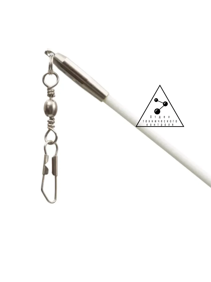 Палочка, созданная из стеклопластика, представляет собой композитный материал с волокнистой основой, что делает ее прочной и легкой. Диаметр конической палочки составляет 7–3 мм, а её длина — 56 см. Металлический карабин надежно фиксирует гимнастическую ленту, а амортизатор выполненный из силикона, минимизирует риск травм при работе с лентой