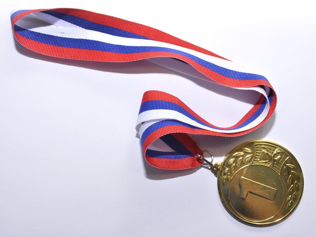 Медаль двусторонняя с лентой (триколор), 1 место.