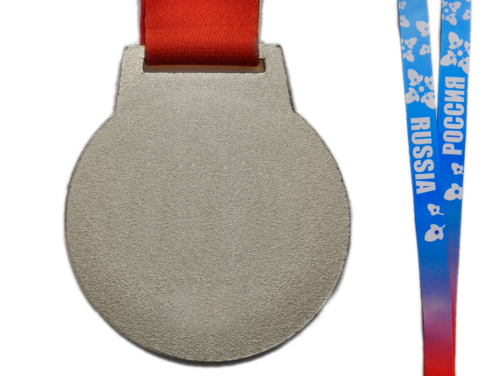 Медаль металлическая с тиснением «2 место» серебро с оригинальной лентой «РОССИЯ».