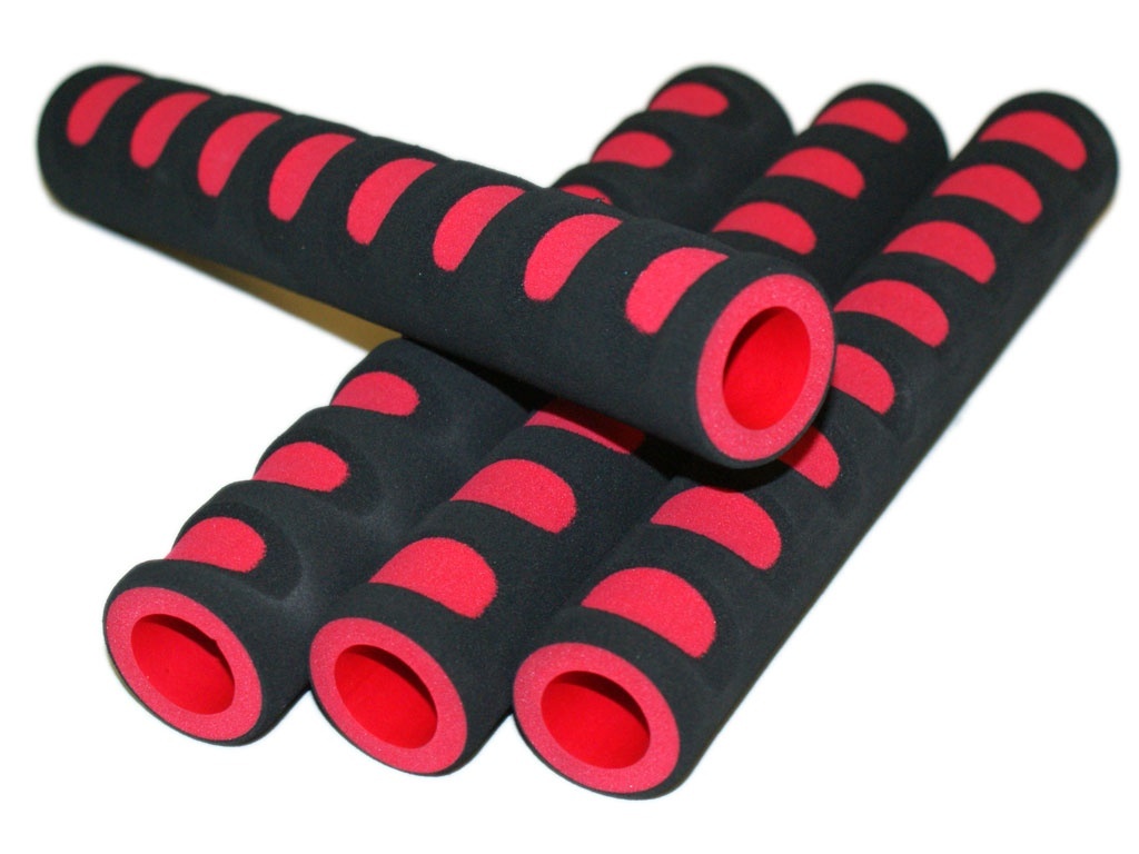 Мягкие накладки на ручки велосипедного руля, самоката выполненные из ПВХ, одеваются на концы руля, их можно менять по мере изношенности. Накладки препятствуют соскальзыванию рук с руля и не натирают ладони.