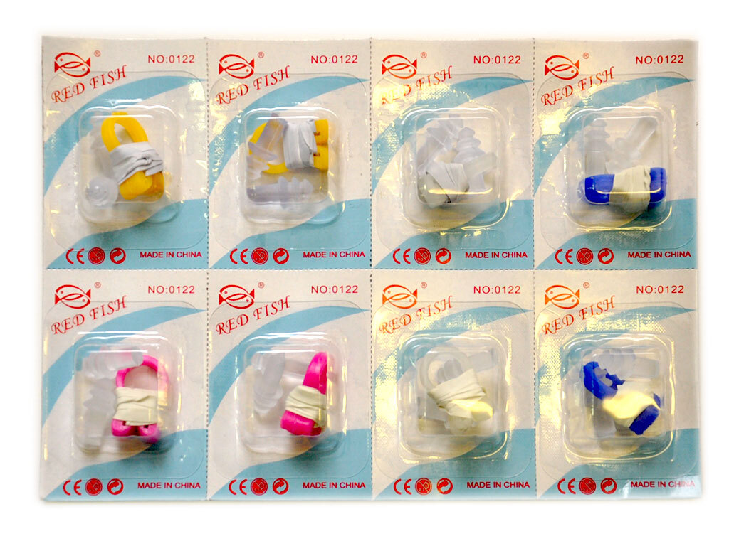 Набор для плаванья в блистере. Такой набор состоит из комплекта беруш и зажима для носа. Беруши предотвращают попадания воды в ушной канал и защищают ушную перепонку. Благодаря своей форме беруши плотно сидят в ухе и не доставляют дискомфорта. Зажим для носа не позволяет попасть воде в нос. В упаковке 8 штук.