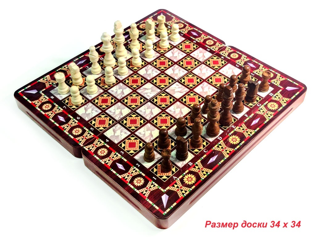 Игра 3 в 1 большая станет самым удачным приобретением для тех, кто любит настольные игры. В отличие от других моделей, в данном варианте удалось объединить сразу три игры - нарды, шашки и шахматы. Теперь у игроков всегда есть выбор, за какой игрой провести свободное время. Модель игры удобна тем, что компактна, и ее можно взять с собой в гости, на природу или в путешествие. Набор включает все необходимое для игры: расчерченные доски, деревянные фигуры для шахмат, универсальные деревянные фишки для игры в шашки и нарды, два игральных кубика (зара)
