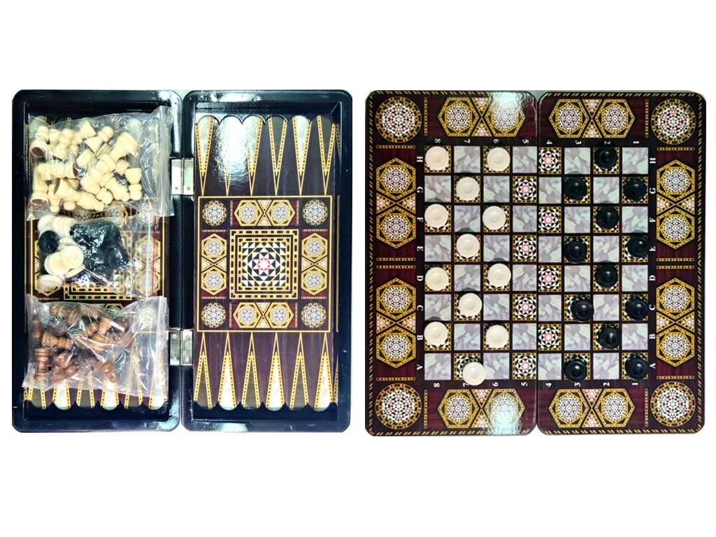 Игра 3 в 1 большая станет самым удачным приобретением для тех, кто любит настольные игры. В отличие от других моделей, в данном варианте удалось объединить сразу три игры - нарды, шашки и шахматы. Теперь у игроков всегда есть выбор, за какой игрой провести свободное время. Модель игры удобна тем, что компактна, и ее можно взять с собой в гости, на природу или в путешествие. Набор включает все необходимое для игры: расчерченные доски, деревянные фигуры для шахмат, универсальные деревянные фишки для игры в шашки и нарды, два игральных кубика (зара)