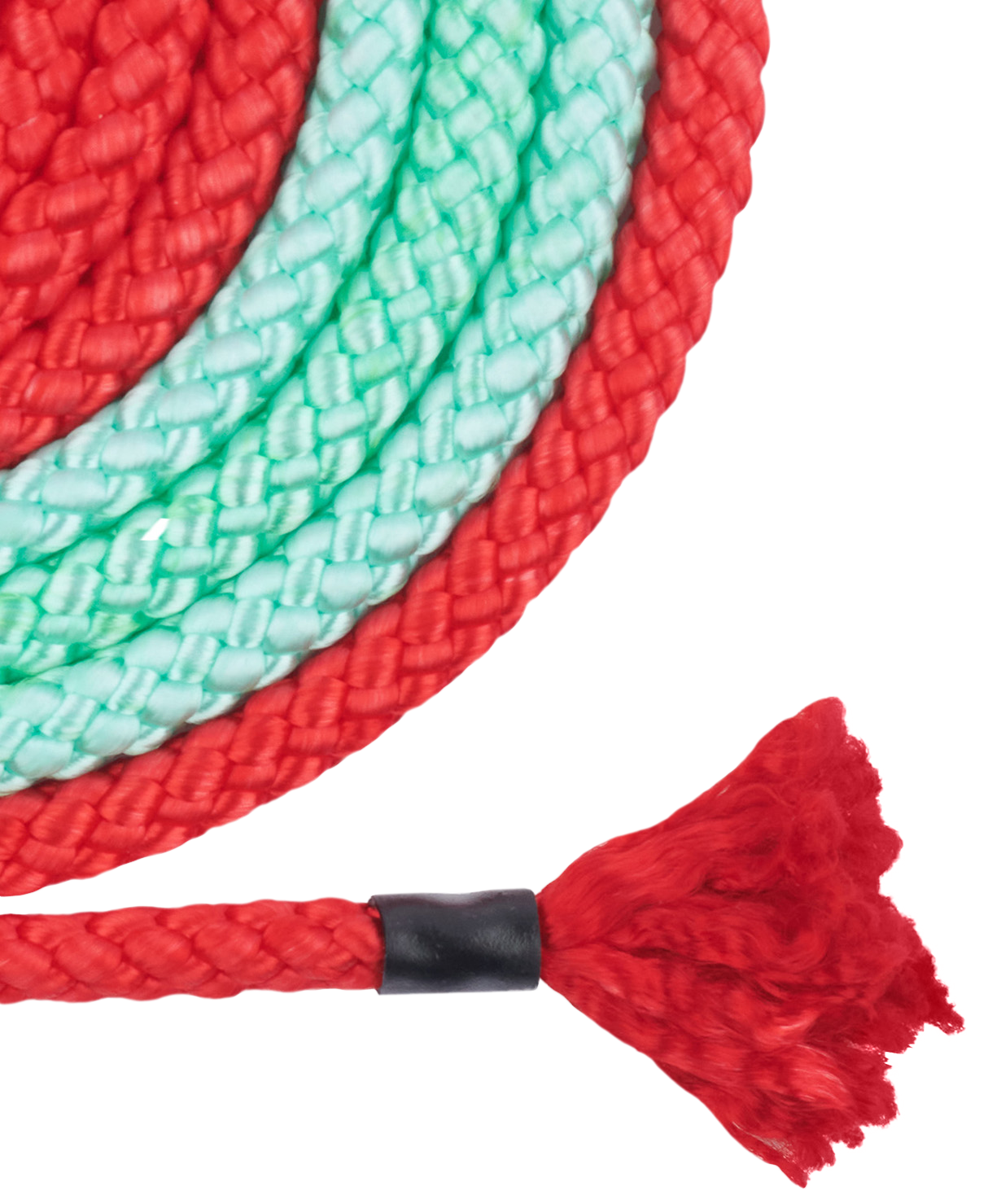 Края скакалки необходимо обрезать, обжечь и завязать в узлы. Длину скакалки необходимо отрегулировать пропорционально росту гимнастки.