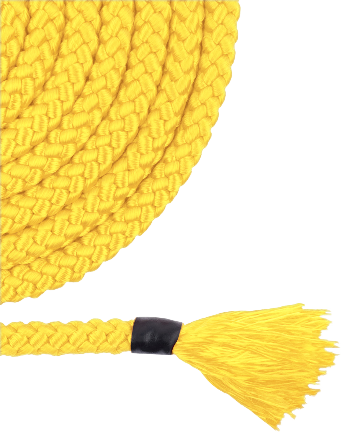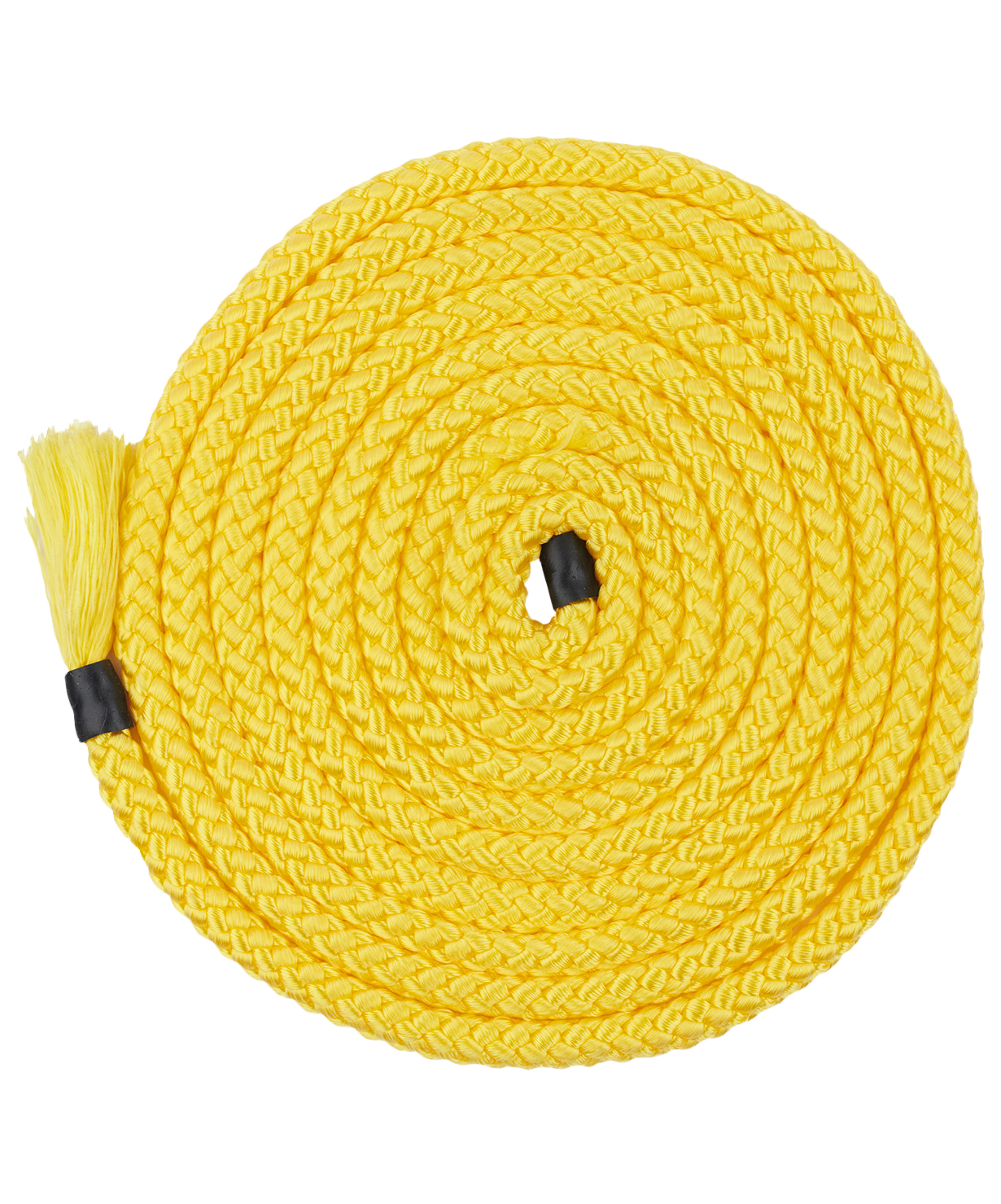 Края скакалки необходимо обрезать, обжечь и завязать в узлы. Длину скакалки необходимо отрегулировать пропорционально росту гимнастки.