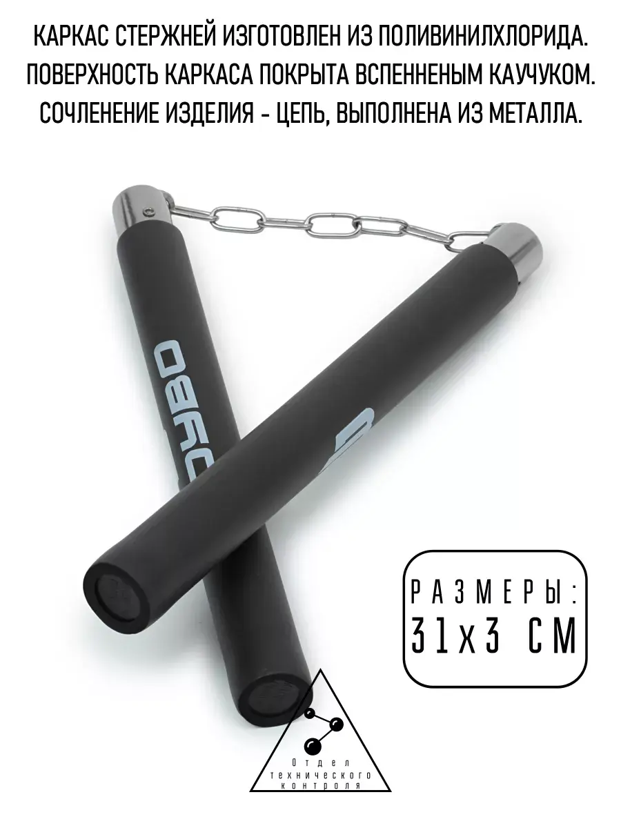Изделие представляет собой два одинаковых стержня длиной 31 см и диаметром 3 см. Они соединены гибким сочленением в виде цепи.