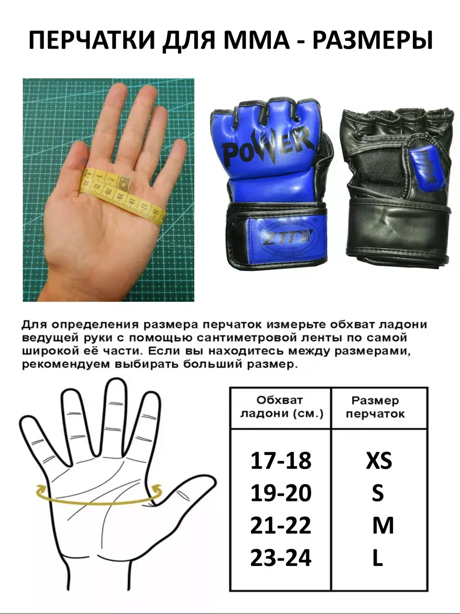 Соревновательные перчатки для ММА должны идеально подходить вам по размеру, чтобы не сковывать движения рук при захватах и других техниках.