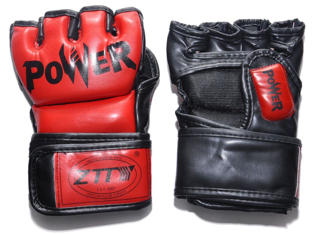 Перчатки POWER для занятий ММА с регулируемым широким напульсником. Такие перчатки необходимы во время тренировок. Перчатки изготовлены из искусственной кожи, ладони полностью открыты и благодаря циркуляции воздуха руки не потеют. Внешняя сторона перчаток из искусственной кожи с внутренними вставками из пенополиуретана. Такие вставки из пенополиуретана обеспечивают максимальную защиту рук. Предусмотрена и защита большого пальца. Яркий стильный дизайн подобран под анатомический крой перчаток повторяющий форму кулака. Напульсник не только фиксирует перчатку, но и создает дополнительную поддержку для суставов запястья во время тренировок. На перчатках имеются липучки позволявшие регулировать размер.
