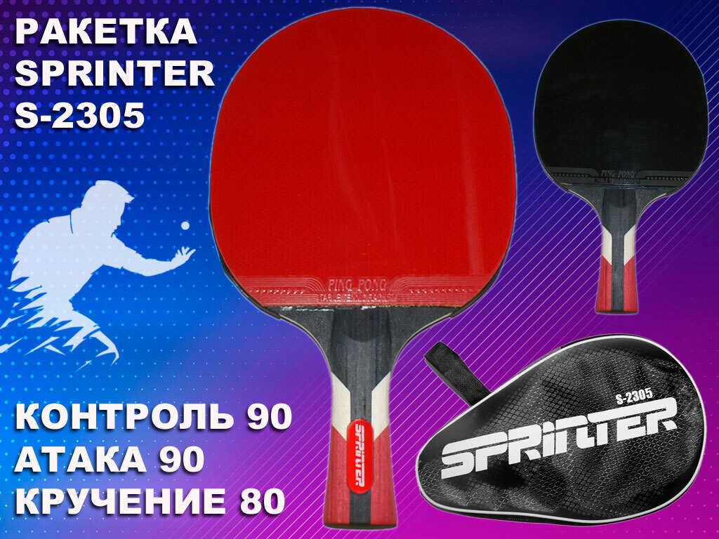 Ракетки SPRINTER для игры в настольный теннис. Такая ракетка отлично подходит для игроков стремящихся найти свой стиль игры и усовершенствовать навыки. Она помогает игрокам контролировать направление и скорость мяча, а также обеспечивают комфортное и удобное манипулирование мячом. Ручка ракетки удобной форма и не доставляет дискомфорта во время игры. Основание ракетки полностью изготовлено из дерева. Накладка состоит из двух слоев: губчатого внутреннего слоя и наружного из специальной резины с обеих сторон. В комплекте удобный чехол для хранения и транспортировки ракетки.