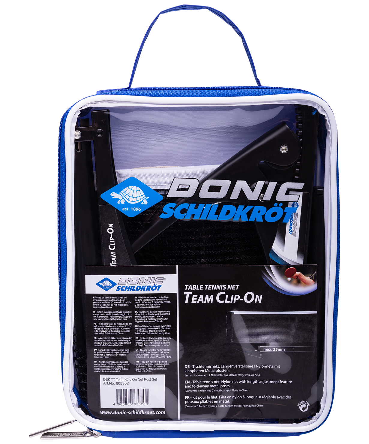 Нейлоновая сетка для настольного тенниса Team Clip On с креплением «клипса» от всемирно известного немецкого бренда Donic-Schildkr?t прекрасно подходит для игры на открытом воздухе и в помещении. Конфигурация крепежа позволит быстро установить изделие на столе. Сетка для пинг-понга регулируется по длине. Максимальная толщина панели стола - 3,5 см.