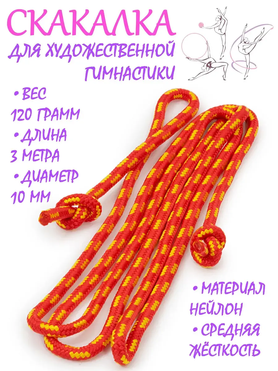 Скакалка для художественной гимнастики – незаменимый атрибут как для начинающих, так и для профессионалов. Изготовленная из прочного нейлона, она сочетает в себе идеальное качество и надежность, что делает её идеальным выбором для тренировки элементов гибкости и координации. Средняя жёсткость этой скакалки обеспечивает оптимальный уровень сопротивления, позволяя гимнастам уверенно отрабатывать свои навыки и достигать новых высот.