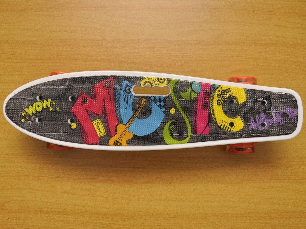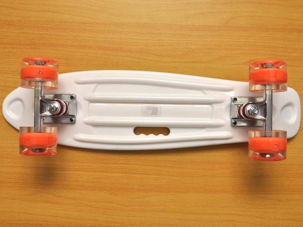 Скейт мини «Круизер» - это смесь лонгборда и скейтборда для повседневного использования. Дека загнута только с одной, хвостовой части. На нем можно с удобством кататься по улицам города. Мини-круизеры имеют удобные габариты, что позволяет пристегивать их к рюкзаку специальными ремнями или носить в чехле. Колеса на мини скейте светятся при вращении колес. Широкие PVC колеса обеспечивают приятное и комфортное катание. Отличный накат доске придают подшипники ABEC-7. На деку нанесен рисунок, придающий стильный вид. Имеется удобная ручка для переноски.