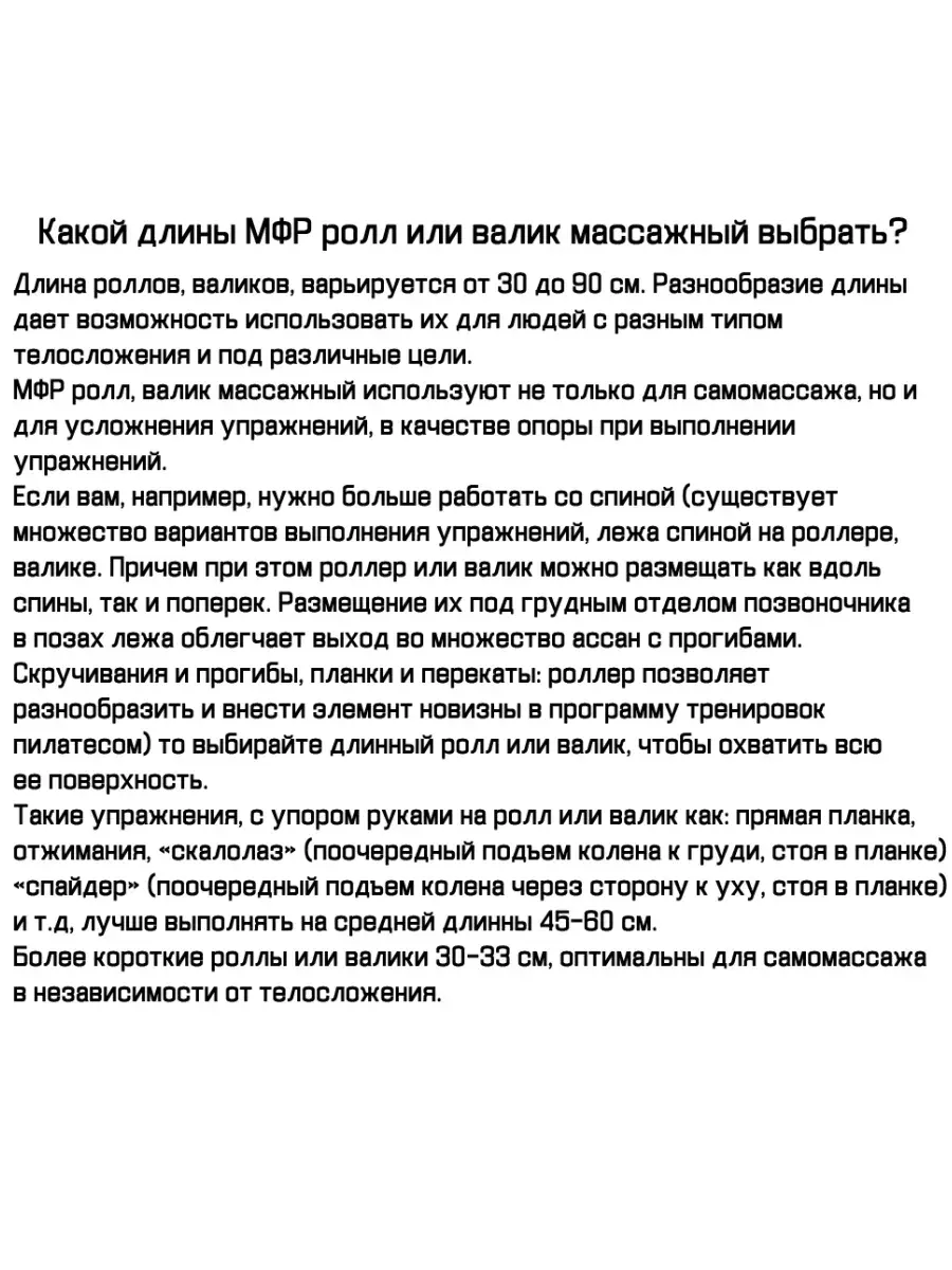 *Форма выпуклостей на валике не имеет большого значения для достижения эффективности при МФР. Они служат для точечного воздействия на прорабатываемую зону и помогают нагнать кровь.