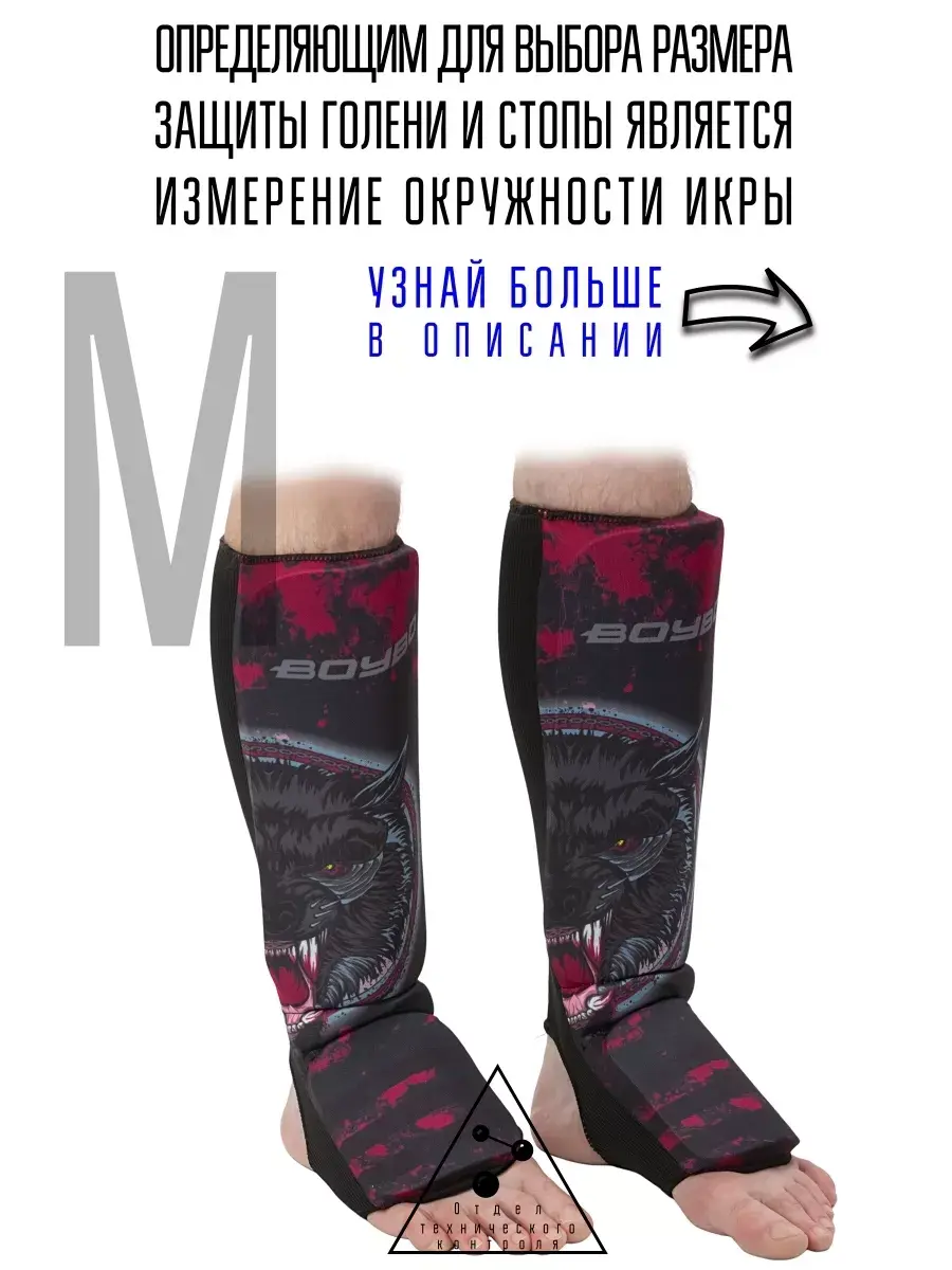 Удары по берцовой кости — одни из самых опасных в единоборствах, где активно используются ноги. Чтобы защитить бойца и его противника от последствий таких ударов, рекомендуется использовать специальную защиту для голени и стопы. *Защита представляет собой чулок длиной до колена с открытыми пальцами и пяткой. Она плотно облегает голень и стопу, не сбивается и не перекручивается благодаря эластичному материалу. Изделие легко надевается и снимается. *Материалы, из которых изготовлена защита: * Чулок: поликоттон — смесь хлопка и полимерных волокон (полиэстера). * Вставки толщиной 1,5 см из пенного полимерного материала (поролона). Поролон — это общее понятие, объединяющее группу вспененных пластических масс (полимеров). В качестве первичного сырья могут выступать полихлорвинил, полиуретан, полистирол и другие материалы. **Как выбрать размер?** Для выбора размера необходимо измерить обхват голени в широкой её части с помощью сантиметровой ленты. Затем следует выбрать полученный результат из приведённой таблицы: * Размер XS — 24–30 см; * Размер S — 30–35 см; * Размер М — 35–40 см; * Размер L — 40–45 см; * Размер XL — 45–50 см.