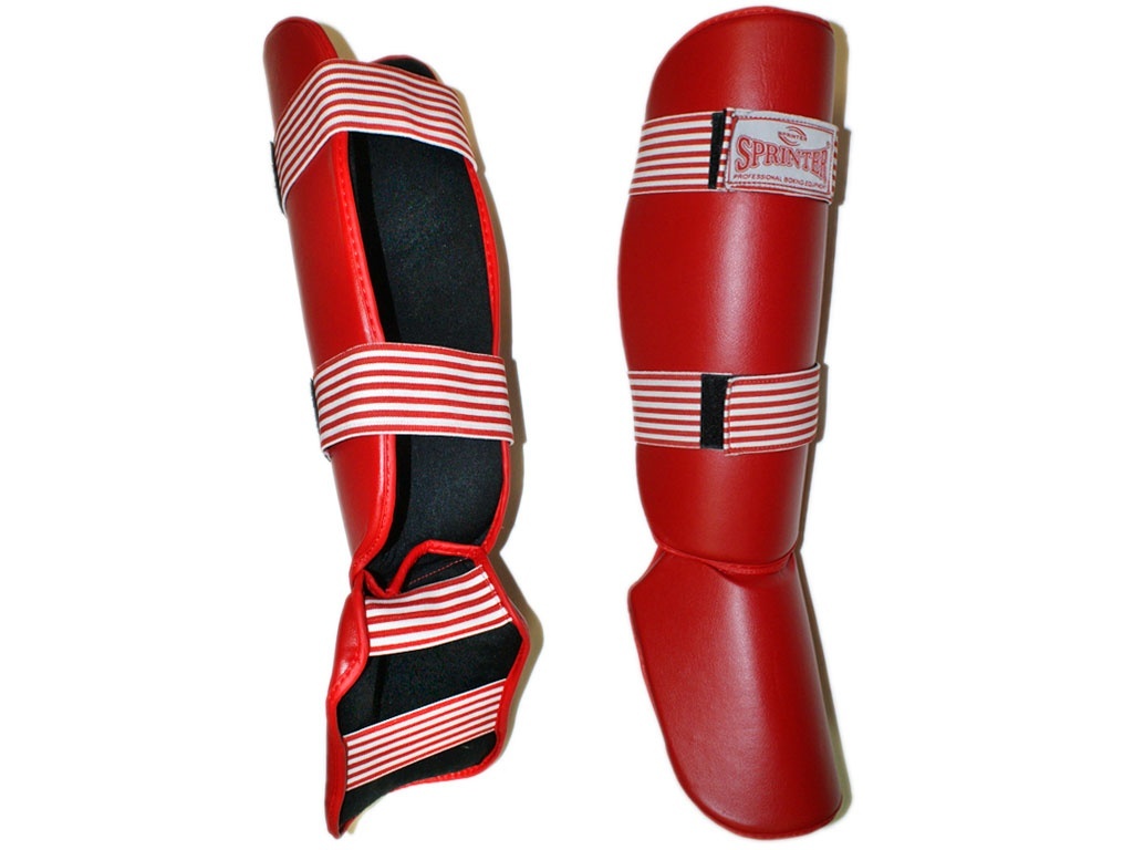 Защита ноги SPRINTER для единоборств. Экипировка изготовлена из кожзаменителя со вставками из поролона. Такая защита защитит ваши ноги во время отработки ударов в спаррингах и на снарядах. Благодаря эластичным резинкам, защиту легко одевать и снимать. Защита цельная и не сковывает движения, стопа и голень сшиты вместе. Одевается защита на ногу и фиксируется дополнительно с помощью липучек. Пальцы ног и пятка на защите открытые.