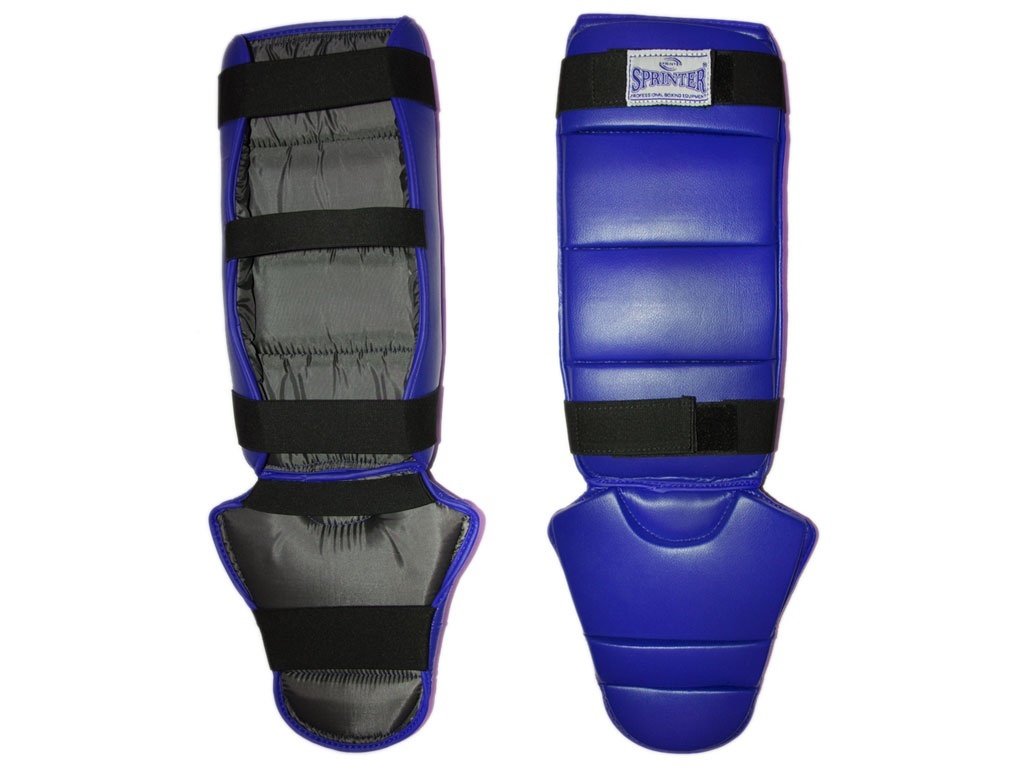 Защита ноги SPRINTER для единоборств. Экипировка изготовлена из кожзаменителя со вставками из поролона. Такая защита защитит ваши ноги во время отработки ударов в спаррингах и на снарядах. Благодаря эластичным резинкам, защиту легко одевать и снимать. Защита цельная и не сковывает движения, стопа и голень сшиты вместе. Одевается защита на ногу и фиксируется дополнительно с помощью липучек. Пальцы ног и пятка на защите открытые.