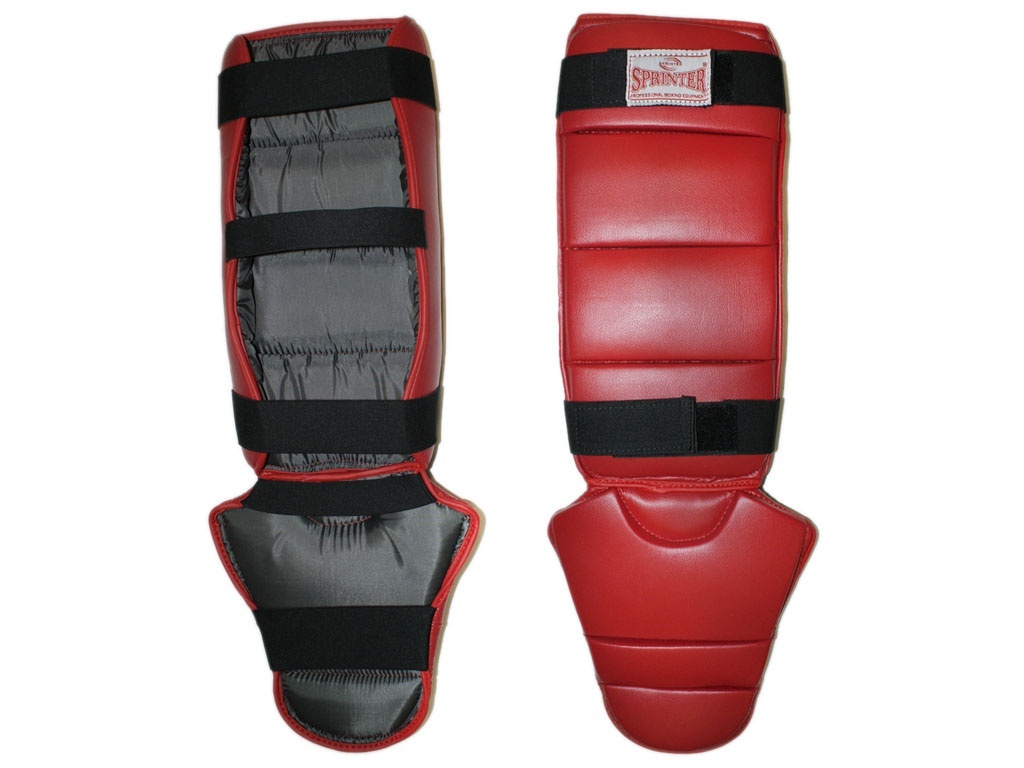 Защита ноги SPRINTER для единоборств. Экипировка изготовлена из кожзаменителя со вставками из поролона. Такая защита защитит ваши ноги во время отработки ударов в спаррингах и на снарядах. Благодаря эластичным резинкам, защиту легко одевать и снимать. Защита цельная и не сковывает движения, стопа и голень сшиты вместе. Одевается защита на ногу и фиксируется дополнительно с помощью липучек. Пальцы ног и пятка на защите открытые.